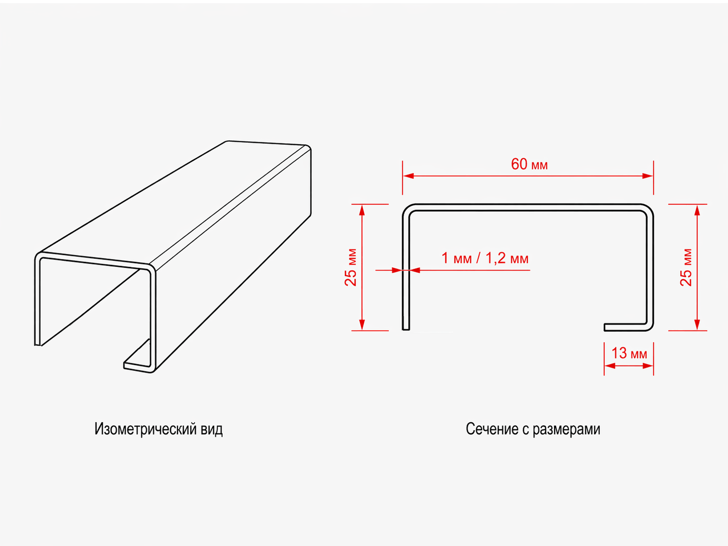 ХАРАКТЕРИСТИКИ: размер — 13×25×60×25 мм; материал — оцинкованная сталь; длина изделия — до 3 м; покрытие — без покраски, под заказ - порошковая окраска в любой цвет по каталогу RAL; изготовление — стандартные размеры и по индивидуальным чертежам; применение — подсистема вентилируемого фасада, монтаж металлокассет и других облицовочных материалов.