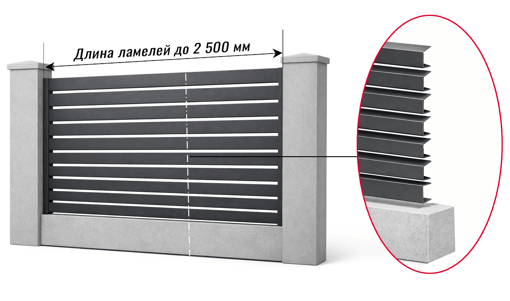 Лёгкое и технологичное ограждение в стиле Ранчо с горизонтальными ламелями из металлического профиля швеллерного типа. Конструкция продумана для быстрой и аккуратной сборки: элементы фиксируются без заклёпок и саморезов, что упрощает монтаж и обеспечивает чистый внешний вид. Рациональное решение для тех, кто ценит минимализм и скорость установки.